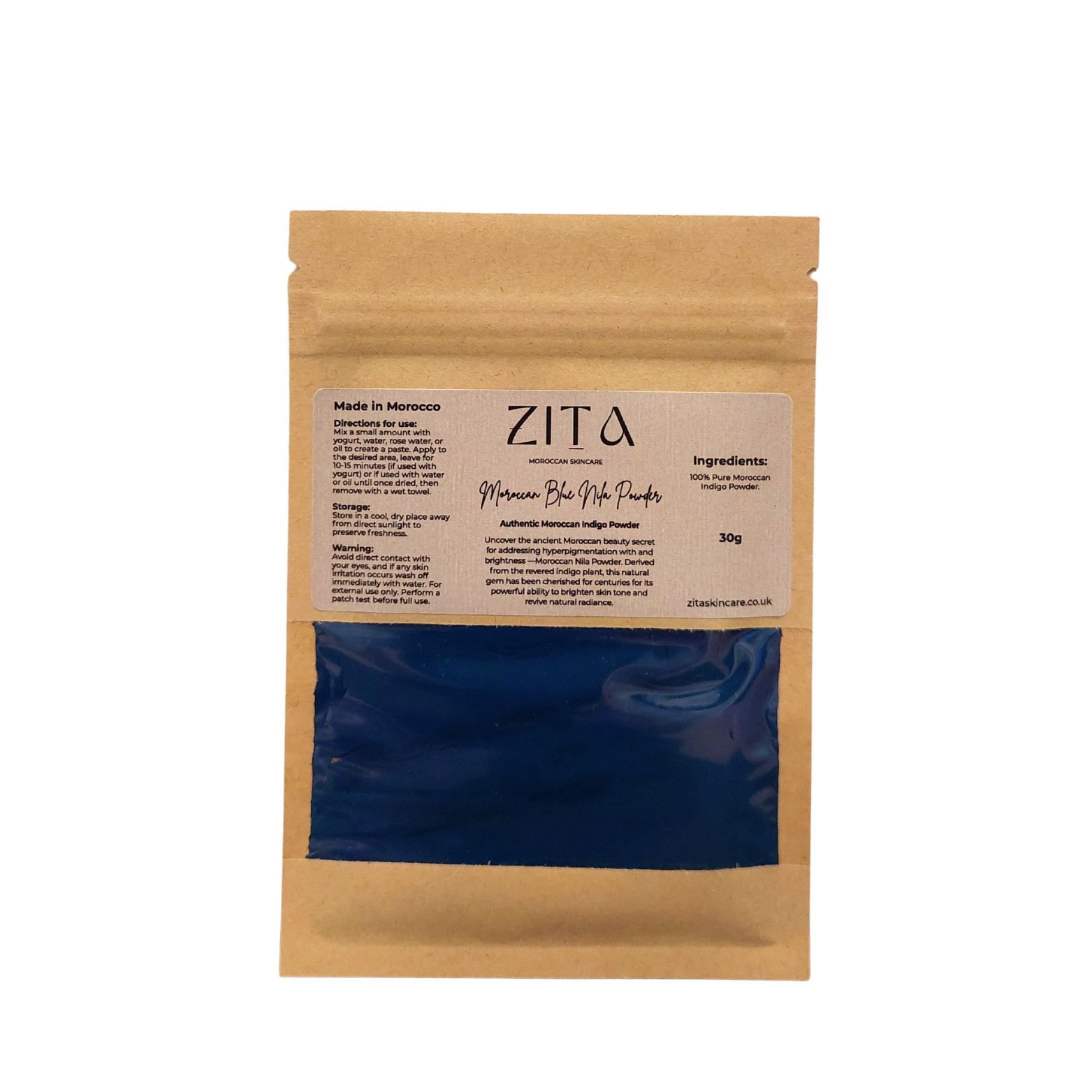 Unlock glowing skin with Moroccan Nila Powder from Zita Moroccan Skincare, a vibrant blue beauty gem straight from Morocco. Made from fermented indigo leaves, a powerhouse plant-based ingredient, this magical powder brightens your complexion while soothing away dark spots and uneven tones.